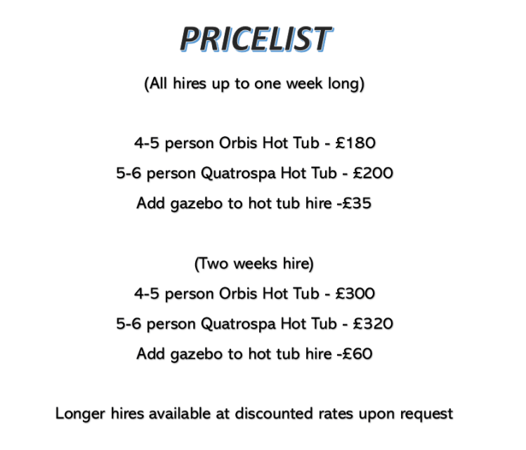- Quality hot tubs – Our tubs are maintained, cleaned and tested to the highest standard to make sure you have a safe and enjoyable experience.